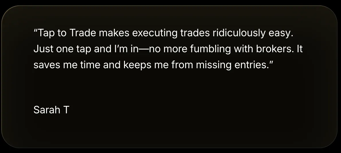 Leverage our tap to trade and trade alerts technology to start winning in the markets. Perfect your trading skills with precise entries by tapping approve on your favorite trade setups.